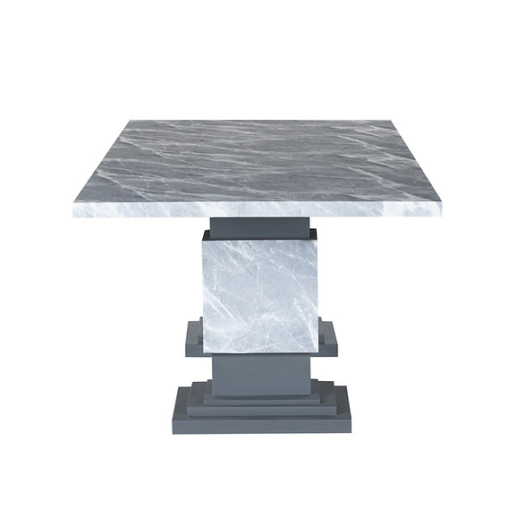 Table: Faux Grey Marble Top with Double Pedestal Base